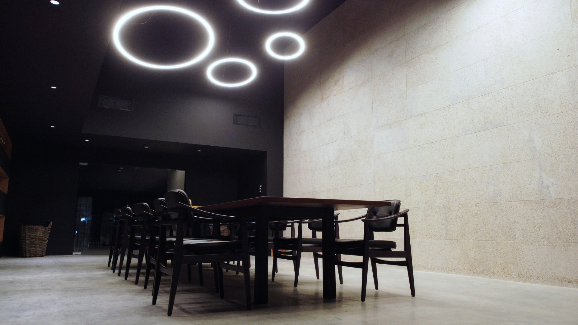 O armazém consiste numa nave com uma área aproximada de 50x22m2 e uma altura total de 8,00 m, onde se localizam ao nível do piso 0 as áreas laborais como oficina, armazenamento, balneários, sala de refeições e gabinetes no, e ao nível do piso 1, as áreas administrativas, nomeadamente gabinetes, sala de reuniões e arquivo.
