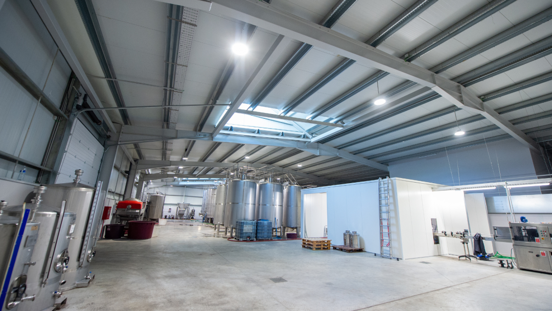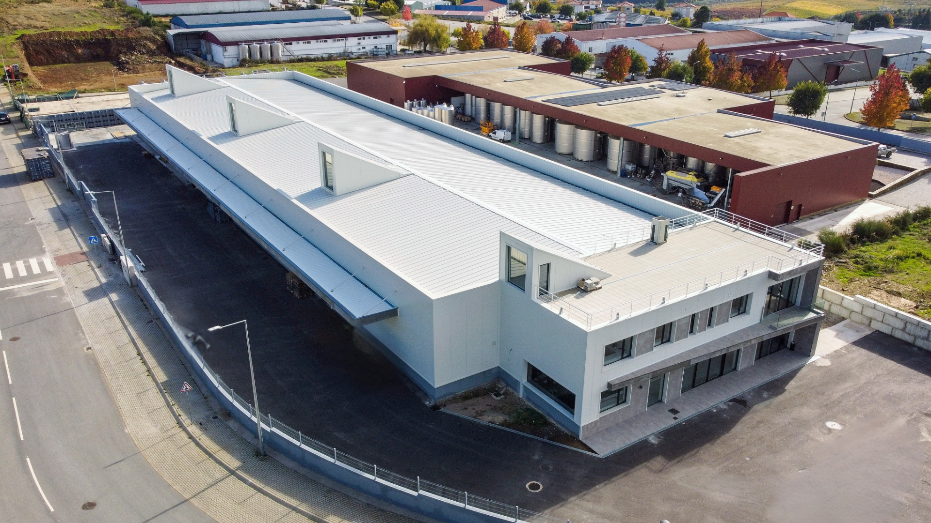 Execução de uma adega em estrutura metálica, com uma área de implantação de 3.000 m², desenvolvida no âmbito de um projeto “chave na mão”.